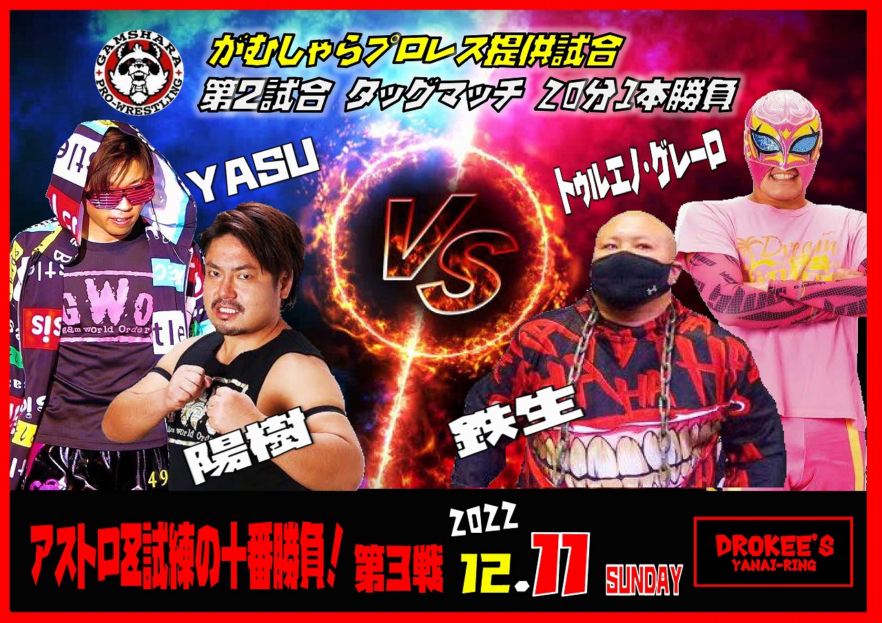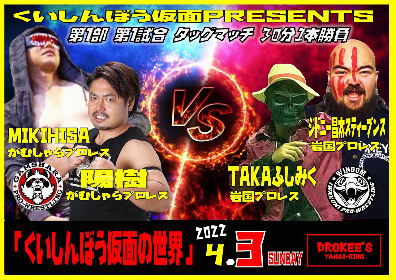 がむしゃらプロレスより鉄生、YASU、豪右衛門、サムソン澤田選手参戦!!(がむしゃらプロレス提供マッチ)