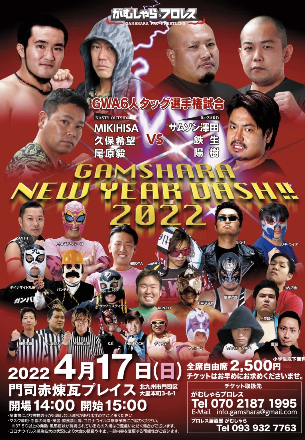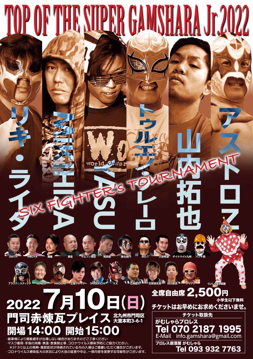 チケットはFREEDOMS公式HPチケット予約フォーム、ちけっとぴあ、またはプロレス居酒屋がむしゃら(093-932-7763)、BEATNIK(070-2331-0523)まで
