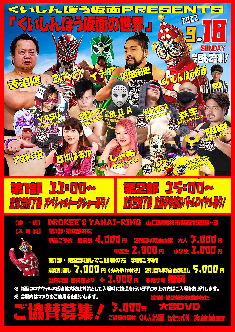 がむしゃらプロレスより、鉄生、YASU、トゥルエノ・ゲレーロ選手参戦!!