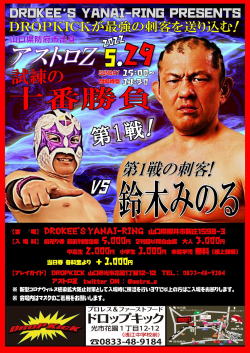 ☆チケット料金◆リングサイド自由席7,000円/1階自由席5,000円/2階自由席/3,000円/中高生3,000円/小学生以下無料